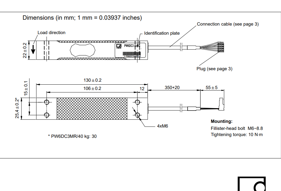 cRR廣州南創電子科技有限公司德國HBM稱重傳感器PW6DC3/3kg尺寸圖:cRR廣州南創電子科技有限公司