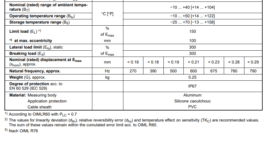 cRR廣州南創電子科技有限公司德國HBM稱重傳感器PW6DC3/40kg產品技術參數:cRR廣州南創電子科技有限公司