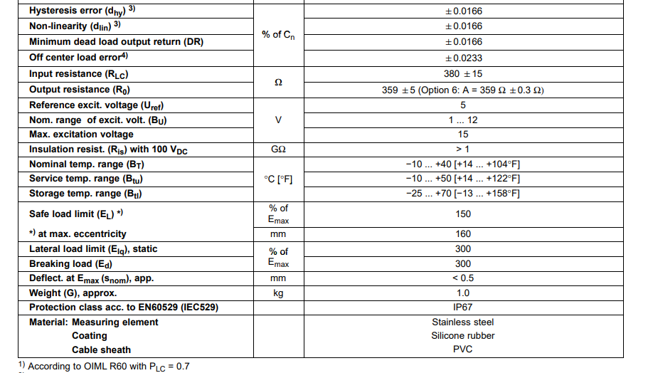 L00廣州南創電子科技有限公司德國HBM稱重傳感器1-PW15AC3MR/100kg-1產品技術參數:L00廣州南創電子科技有限公司
