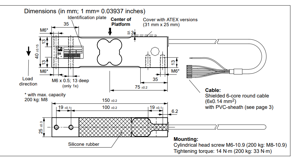 L00廣州南創電子科技有限公司 L00廣州南創電子科技有限公司德國HBM稱重傳感器PW15AC3MR 150kg尺寸圖:L00廣州南創電子科技有限公司