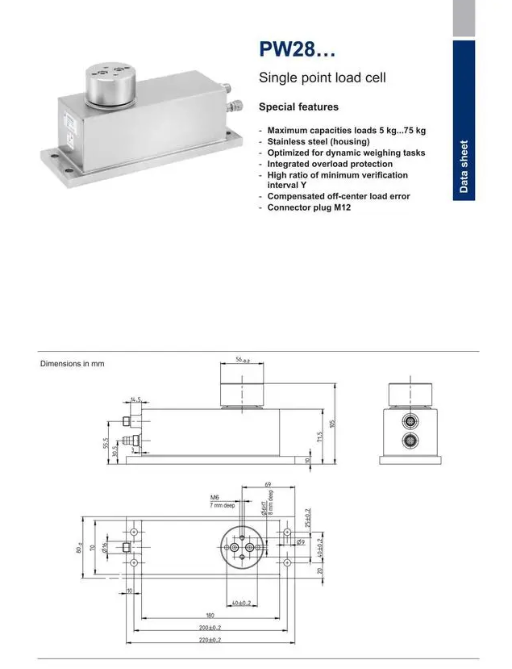 iQ2廣州南創電子科技有限公司最小檢定分度值高達 20000,PW28 單點稱重傳感器完全滿足 C3 精度等級要求,可為您提供非常精確的測量結果。不銹鋼外殼固有的高剛度,使其非常適用于靜態和動態應用。IP67 防護等級可用于惡劣的工業環境。所有PW28稱重傳感器,無論其量程大小,均內置過載保護,可防止意外過載。