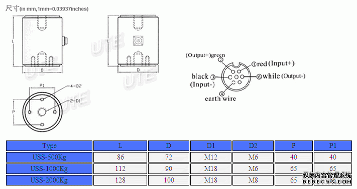 臺灣UTE USS稱重傳感器產品參數圖:1cT廣州南創電子科技有限公司