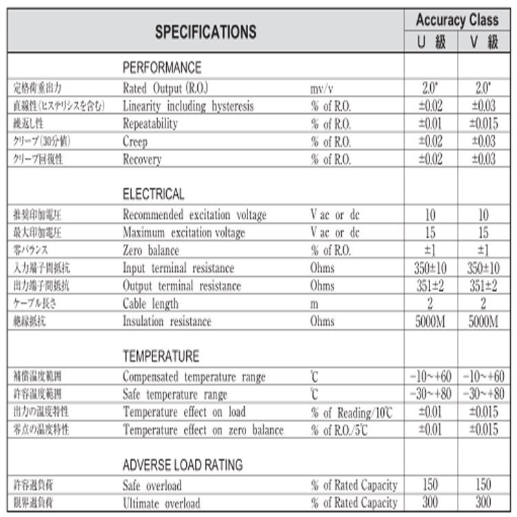 UB3-300kg稱重傳感器Yamato技術參數:keX廣州南創電子科技有限公司