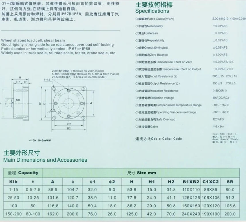 ac稱重傳感器GY-2-0.5T更多產(chǎn)品詳細(xì)資料請(qǐng)點(diǎn)擊:AC稱重傳感器,進(jìn)入頁(yè)面可查找美國(guó)ac傳感器GY-2-7.5T型號(hào)、稱重傳感器GY-2-0.5T技術(shù)參數(shù)選型資料,以及GY-2-0.5T稱重傳感器具體安裝技術(shù)指導(dǎo)信息。pYJ廣州南創(chuàng)電子科技有限公司產(chǎn)品名稱:GY-2-0.5T GY-2-7.5T稱重傳感器 美國(guó)ac