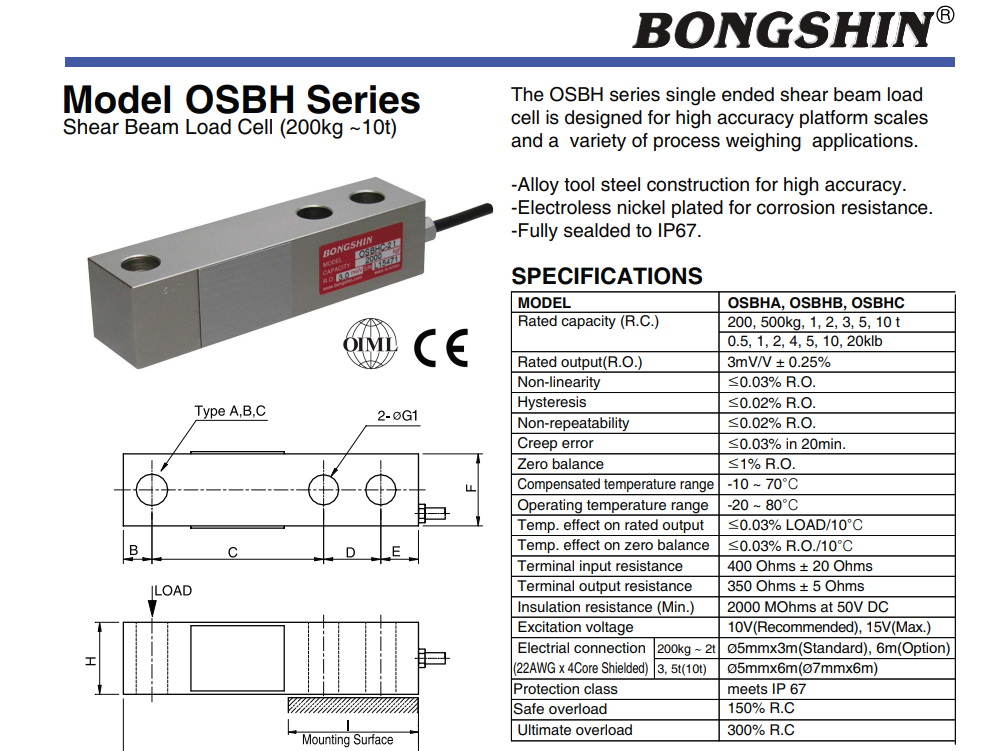 qX7廣州南創電子科技有限公司奉信稱重傳感器OSBH系列參數圖:qX7廣州南創電子科技有限公司