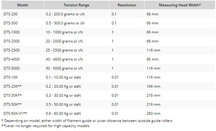 12種張力范圍從0.2-200克到0.6-60 Kg,線徑到3mm