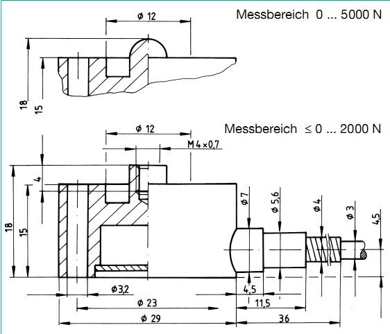 這個模型的負載細胞使用證明應變儀技術進行測量。應變儀應用于敏感元件和連接,形成一個完整的橋。電阻的增加,全橋的荷載作用于它,所以,這座橋供應一個輸出電壓成正比的測量變量。來達到盡可能最高的測量精度,傳感器不應受到側向力。一個應變救濟和反彎曲機制連接電纜集成傳感器的住房。這個模型允許力應用兩種:壓縮通過負載應用程序按鈕和張力通過中心內部線程。測量范圍為0…5000 N是專門提供與綜合負載應用程序按鈕。傳感器必須被安裝在一個水平的平面上用螺絲安裝在三個鉆孔的外環。