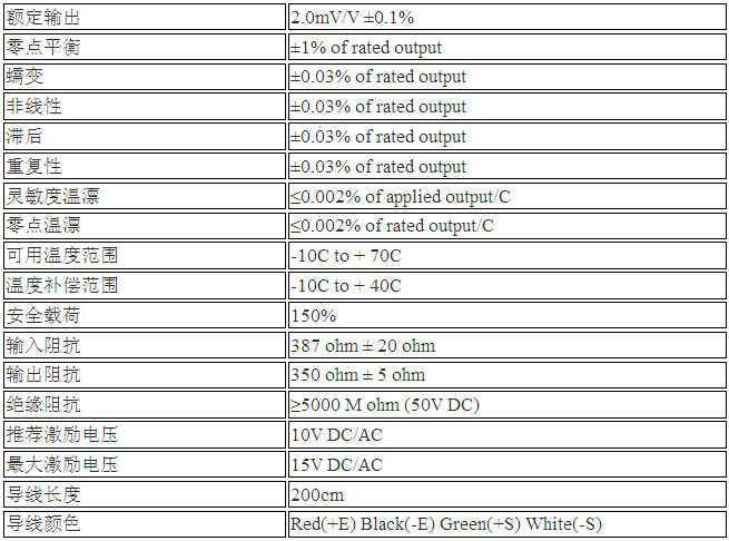 美國Transcell稱重傳感器SBSK-50kg產品參數: