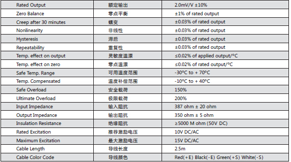 美國Transcell FSSV系列稱重傳感器所有量程如下:tM4廣州南創電子科技有限公司