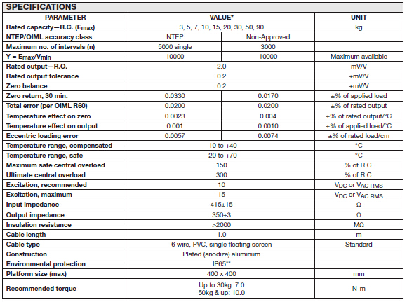 美國tedea稱重傳感器 1015系列稱重傳感器所有量程如下:Kiy廣州南創電子科技有限公司