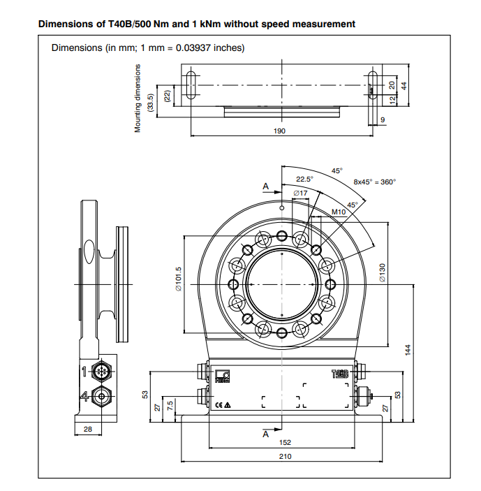2kI廣州南創電子科技有限公司德國HBM扭矩傳感器T40B/500NM產品尺寸圖: