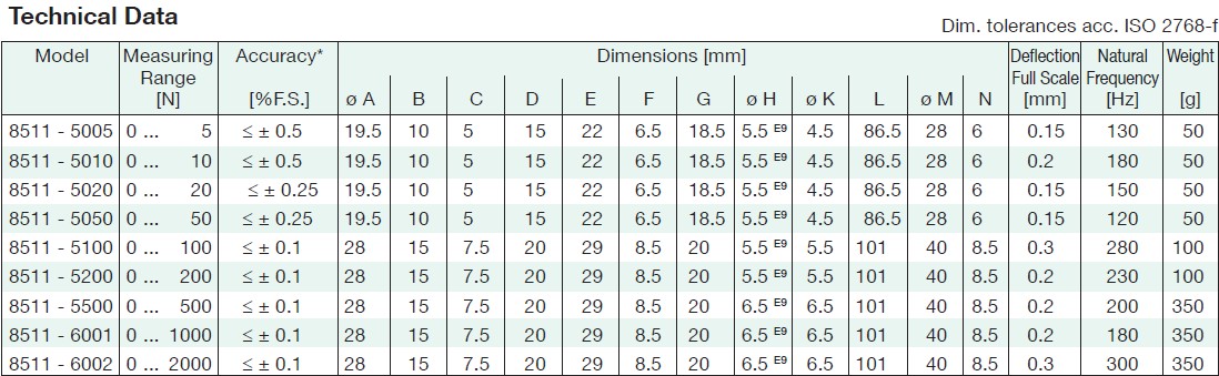 截至測量范圍0 ... 200千牛頓的負載8511-6001傳感器不適合于一個非常高的數字周期性載荷。