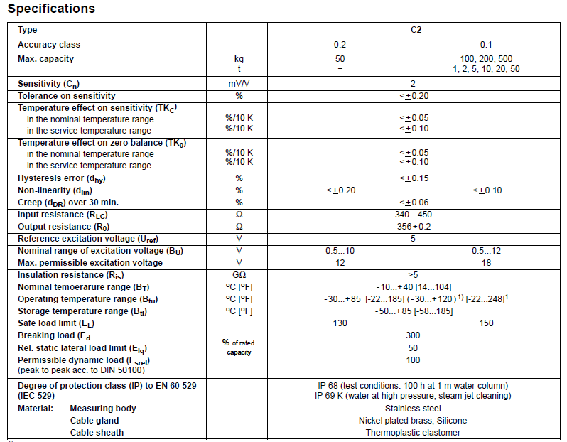 傳感器C2/200KG其有非常高的精度(按照 OIML R 60 標(biāo)準(zhǔn)),并且可以應(yīng)用于惡劣的工業(yè)環(huán)境是平臺(tái)秤,料斗秤.的理想選擇。