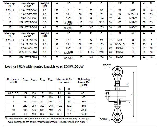 U2A/10T系列稱重傳感器其他相關型號及量程具體詳細信息: