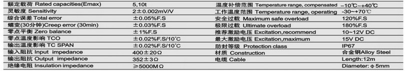 BHS-5T稱重傳感器產(chǎn)品性能特點描述: