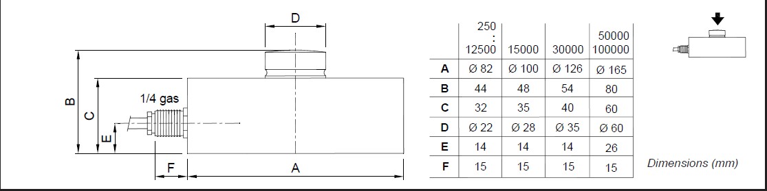 Laumas CBL-2500kg稱重傳感器外形尺寸選型(mm)