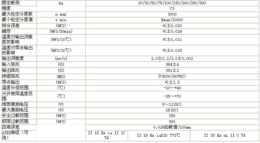 zemic H6E-C3-300KG稱重傳感器負載能力:電流型≤100mS電壓型 ≥100KW