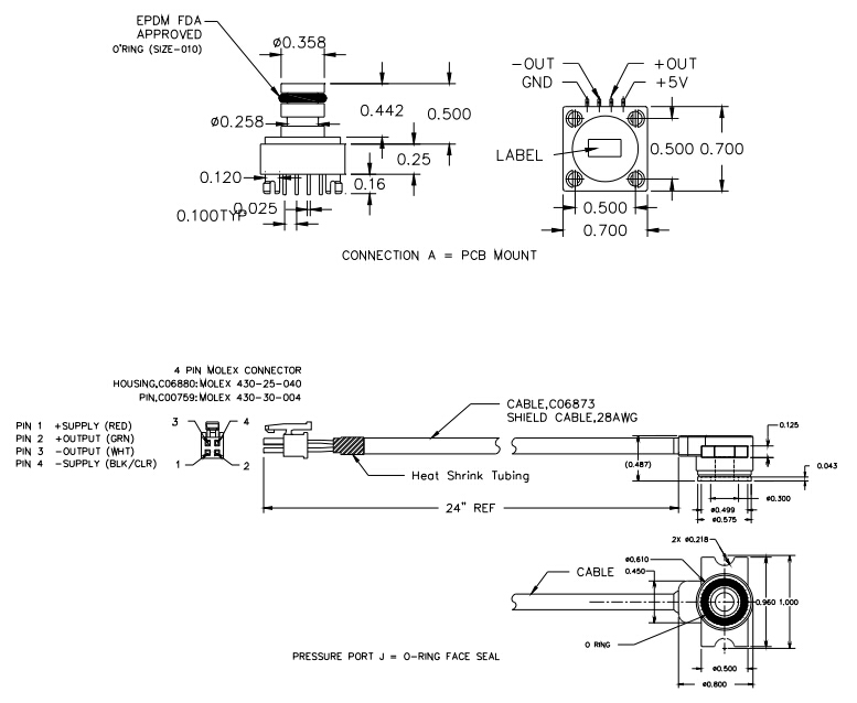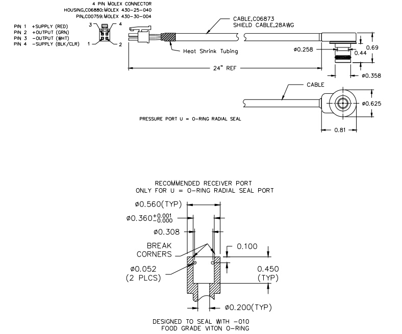 美國MEAS MSP100壓力傳感器尺寸參考圖: