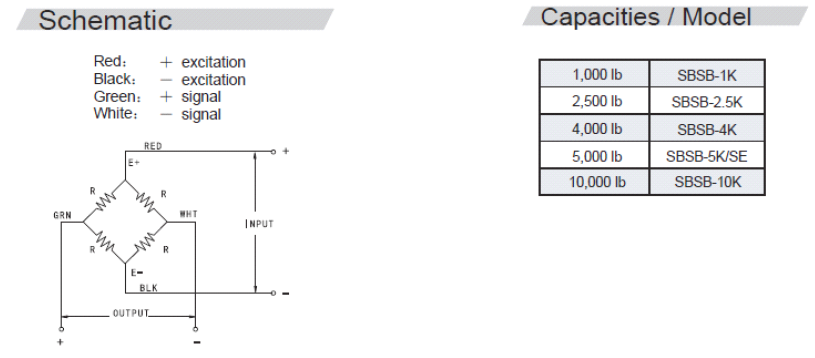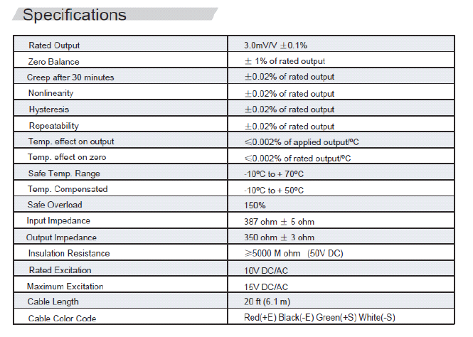 美國Transcell SBSB-SBSB-2000kg稱重傳感器技術(shù)參數(shù)圖: