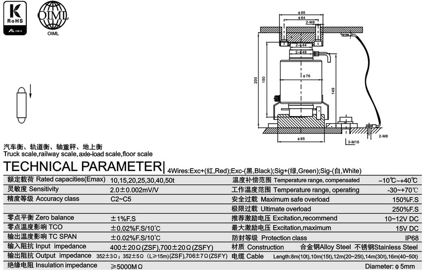 ZSF-A-15T稱重傳感器主要特點(diǎn):