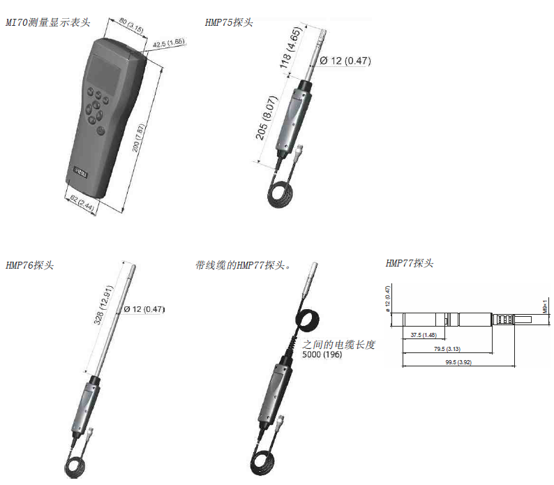 H M P 7 5是一種通用探頭,而H M P 7 6是一種長桿不銹鋼材質的探頭,特別適用于多灰塵環境下的現場檢查。HMP77使用小型探頭,帶有5 米探頭電纜,是不宜到達的測量區域以及維薩拉過程變送器現場校準的理想選擇。