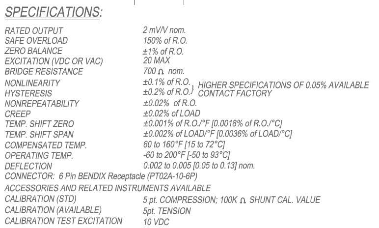 美國FUTEK LCF455稱重傳感器技術參數圖: