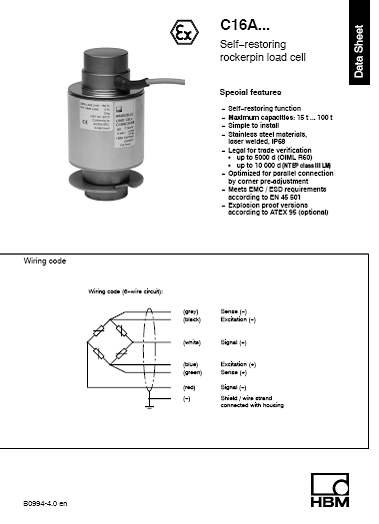 德國HBM C16AD1/60T稱重傳感器特點與應用: