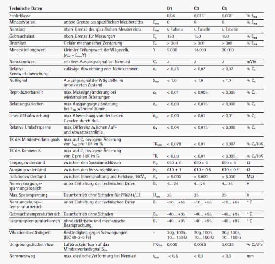 德國sartorius PR6241/12D1稱重傳感器技術參數: