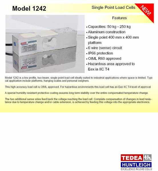Tedea-huntleigh 1242單點式稱重傳感器所有型號:1242-50kg 1242-100kg 1242-150kg 1242-200kg 1242-250kg