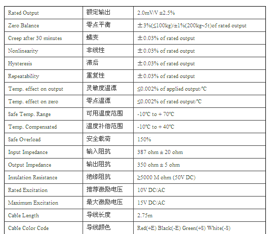 美國Transcell CR-1T稱重傳感器技術參數圖:
