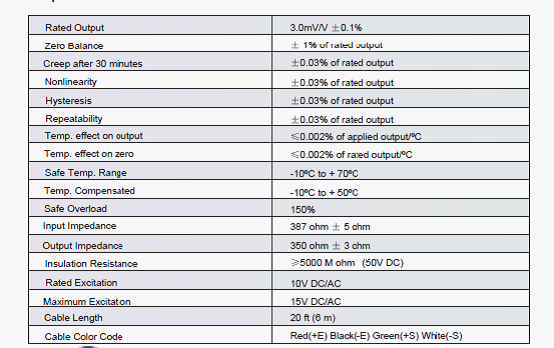 美國Transcell SBS-1.5稱重傳感器技術參數圖: