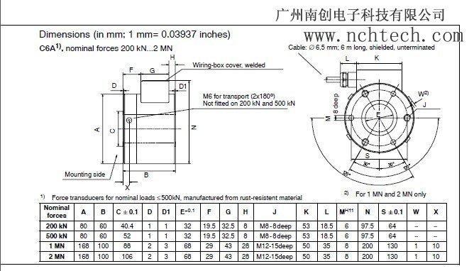 德國HBM c6a/200mn力傳感器系列產品c6a/200mn詳細信息,德國HBM稱重傳感器;c6a型號都是一樣的參數以下這編是c6a/200mn力傳感器具體技術參數及相關系列產品型號等信息。