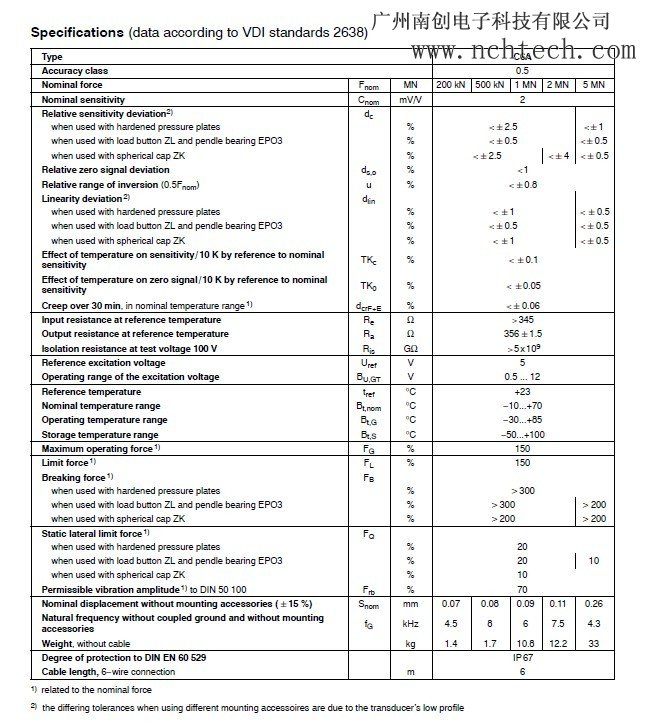 德國HBM c6a力傳感器技術參數:
