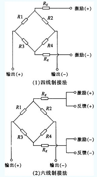 稱重傳感器有四線制接法和六線制接法兩種。稱重傳感器采用四線制接法對二次儀表無特殊要求,便于使用,但電纜線較長時,極易遭受環境溫度波動等因素的干擾;六線制接法的稱重傳感器要求與之配套使用的二次儀表具備反饋輸入接口,使用范圍具有極限性,但不易遭受環境溫度波動等因素的干擾,在長距離測量及精密測量時具有一定的優勢。QhW廣州南創電子科技有限公司