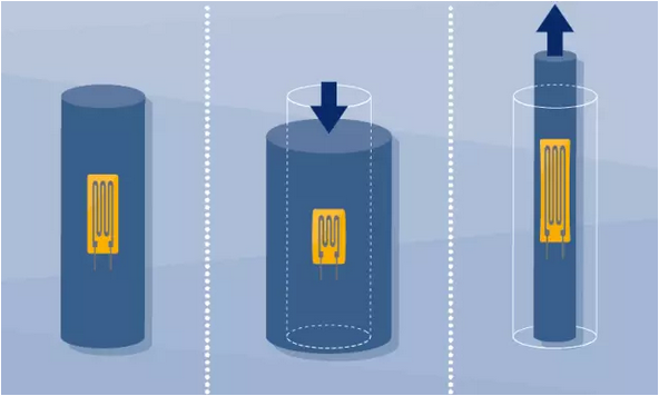 讓我們來簡單地了解下應變片:其作為電導體牢固地附著在基底上。當基底被拉伸時,應變片將會變長。反之被壓縮時,應變片將會縮短。結果是導致應變片 電阻產生變化。這就是應變測量原理,通過應變電阻產生變化來確定應變大小。