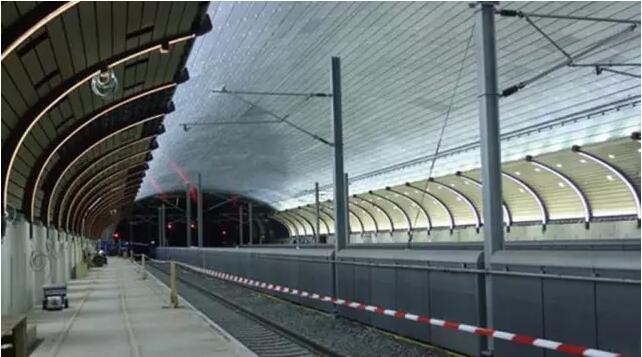 天花板采用 6 米長的錨桿懸吊,采用特殊的方式安裝,以確保極高的安裝精度。這對安裝帶來了極大地困難,因為其 離地 25 米高,并且有 200 多個應變測量點。