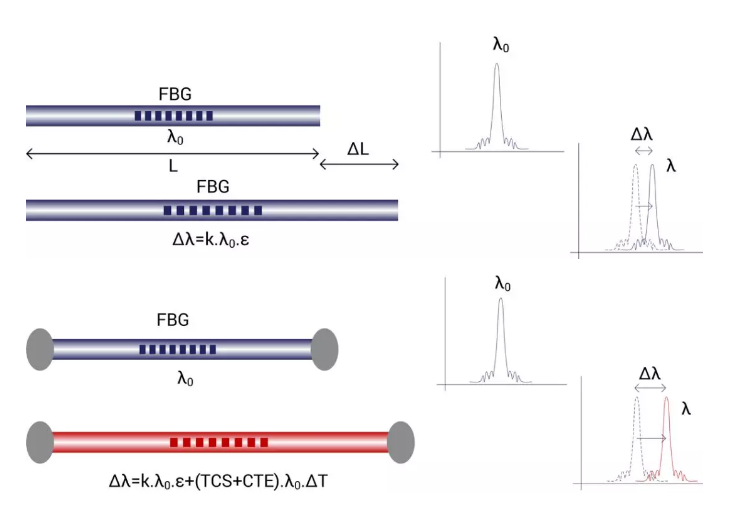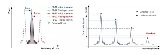傳感器之間的布拉格波長距離定義了兩個(gè)傳感器的最大測(cè)量范圍,因?yàn)槿绻盘?hào)重疊,測(cè)量將受到影響。每個(gè)傳感器的使用波長范圍取決于其測(cè)量范圍,溫度工作范圍,以及傳感器靈敏度、傳感器交叉靈敏度和材料熱膨脹引起的熱感應(yīng)波長偏移。