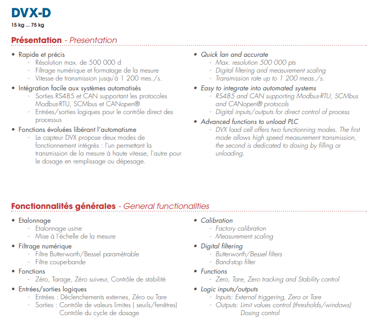 法國Scaime稱重傳感器DVX-D-7.5KG產(chǎn)品特性: