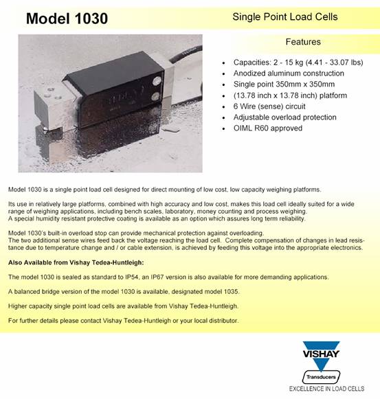 描述:1022是為低成本稱重秤設(shè)計的單點(diǎn)式傳感器。其緊湊的外形尺寸以及較低的成本適用于零售秤、計價秤和計數(shù)秤。