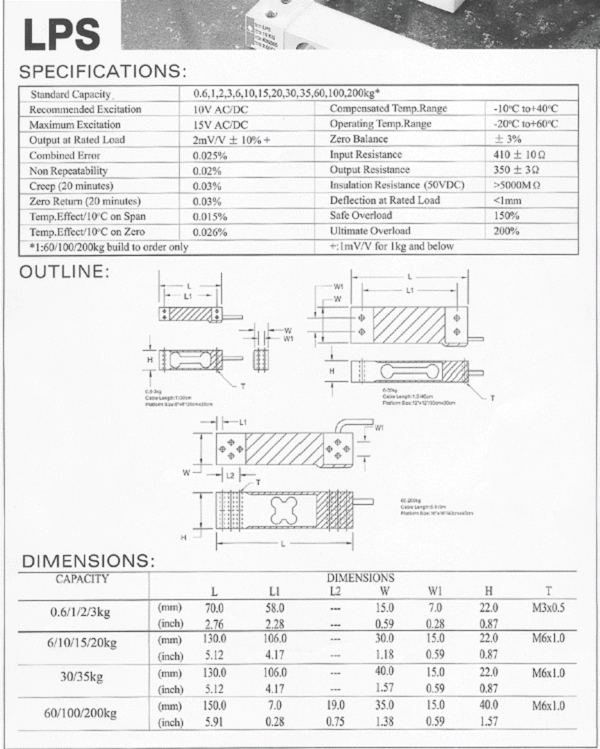 LPS-3kg,Celtron LPS-10kg稱重傳感器主要參數(shù):