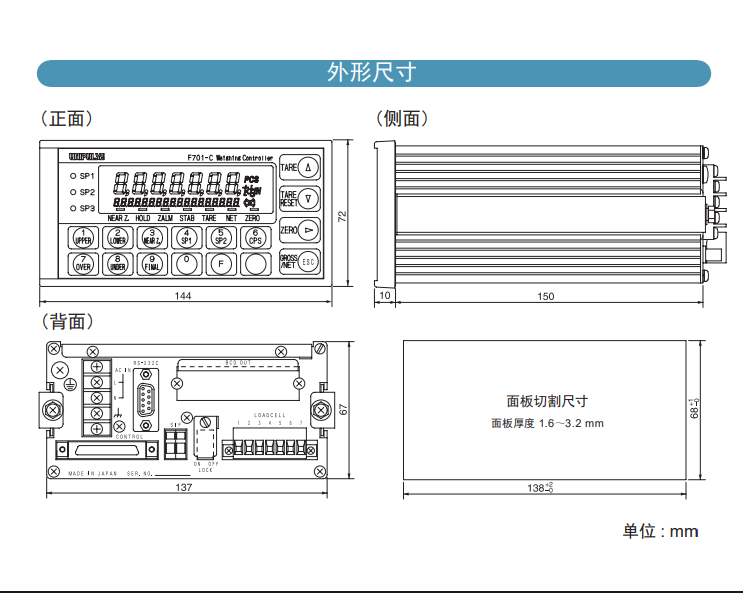 2dK廣州南創電子科技有限公司日本尤尼帕斯稱重儀表F701技術參數:
