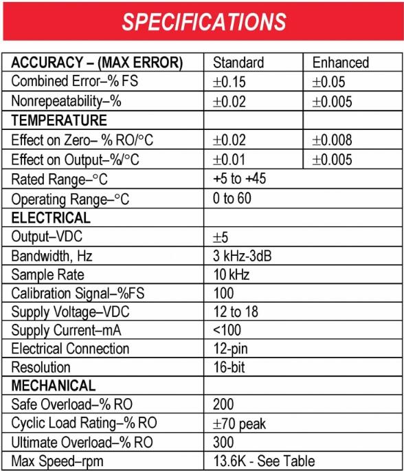 美國Interface扭矩耦合旋轉扭矩傳感器T1主要特點:
