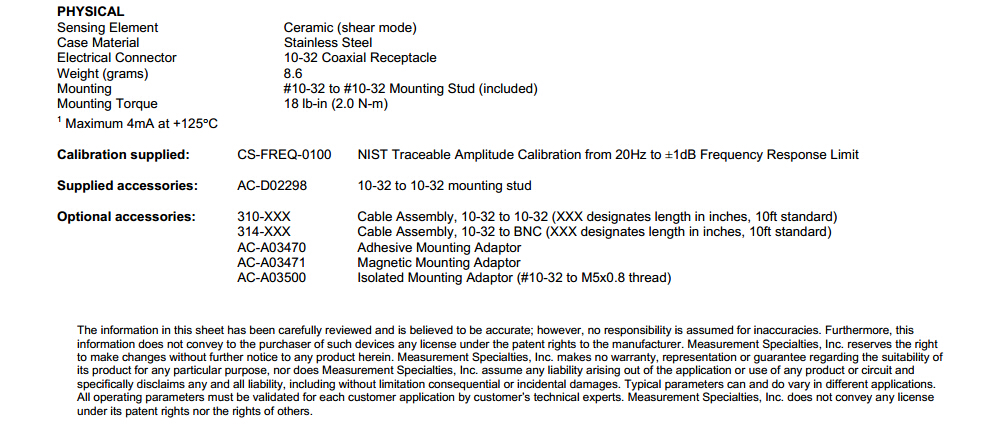 美國MEAS 7204A加速度計(jì)性能規(guī)格圖: