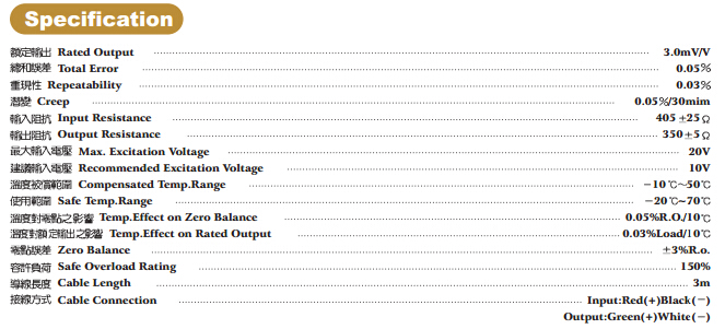 臺灣JIHSENSE LC稱重傳感器性能規格參考圖: