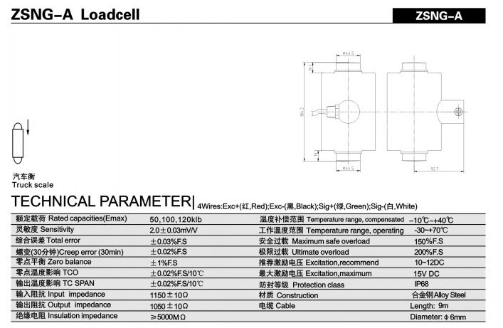 ZUS廣州南創電子科技有限公司ZUS廣州南創電子科技有限公司寧波柯力稱重傳感器ZSNG-A-50klb產品技術參數及尺寸圖:ZUS廣州南創電子科技有限公司