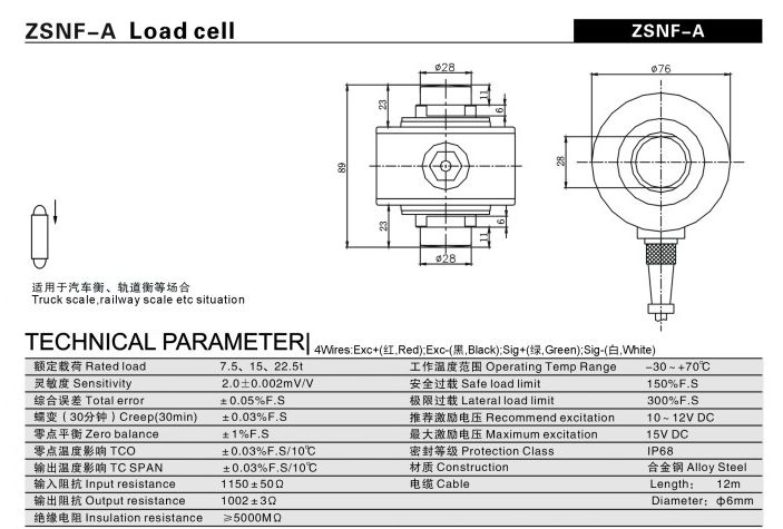 柯力 ZSNF-A-7.5t稱重傳感器型號類別技術參數選型安裝等資料信息,如果有關