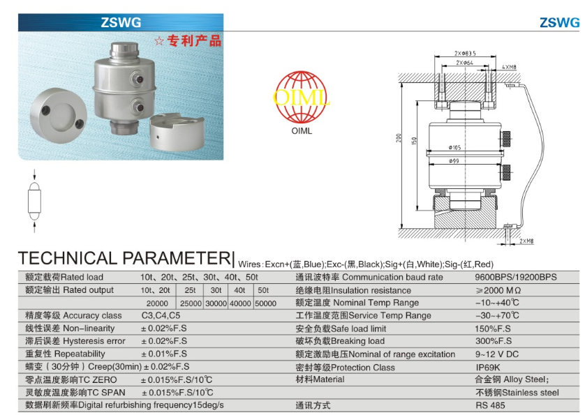 柯力 ZSW-D型FB-40t稱重傳感器型號類別技術參數選型安裝等資料信息,如果有關
