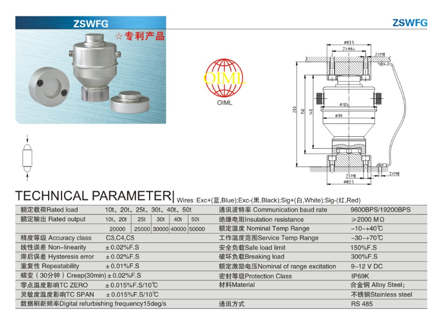 柯力 ZSWFG-10t稱重傳感器型號類別技術參數選型安裝等資料信息,如果有關