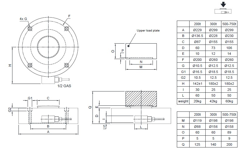 最大量程負載(E max):200000Kg、300000Kg、500000Kg、750000Kg