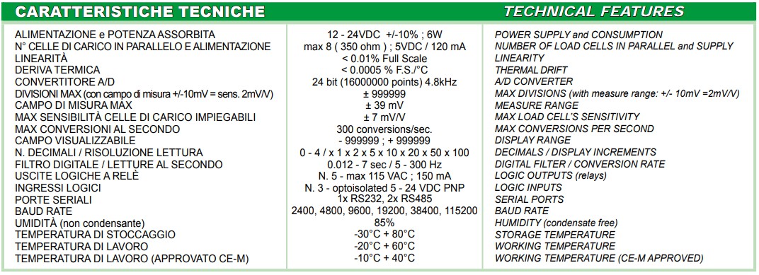 ABS重量指示器,尺寸為122 x 226 x 164毫米。IP40防護等級(D-SUB連接器)。19鍵薄膜鍵盤。46個指示燈符號。實時時鐘/日歷??赡艿陌惭b方式:桌子,墻壁